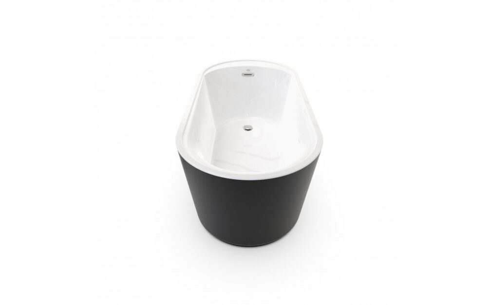 - Bain autoportant en acrylique pure lucite de 3,22 mm d’épaisseur, blanc intérieur, noir mat extérieur