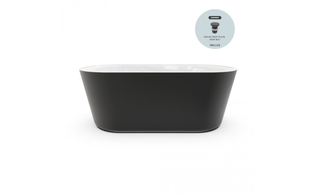 - Drain et trop plein en noir inclus, situés au centre du bain