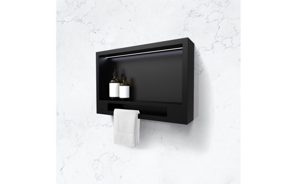 - Tablette de 4 3/4″ pour entreposer les produits de beauté et de nettoyage